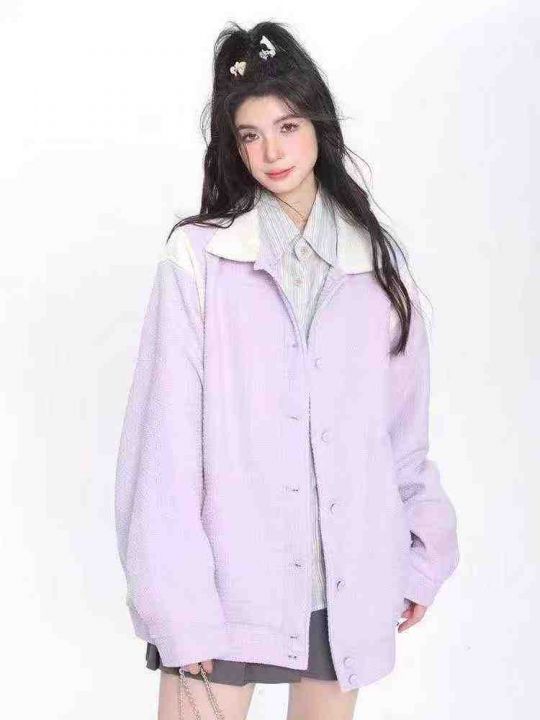 [月亮]:香芋紫棒球服华夫格撞色外套