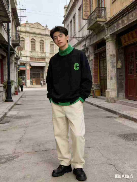 整款假两层毛衣领加绒卫衣男加厚款痞帅秋冬...