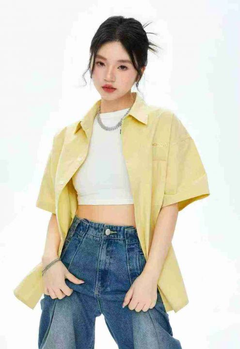 糖果色宽松短袖衬衫131件8.5,小Logo图案刺绣,码数1-...