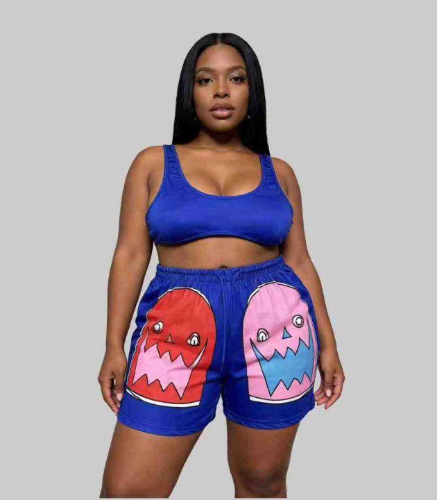 欧美跨境性感背心短裤印花两件套,整款五色,数量312套,码数S-2XL,品质好,拉链式独立包装。