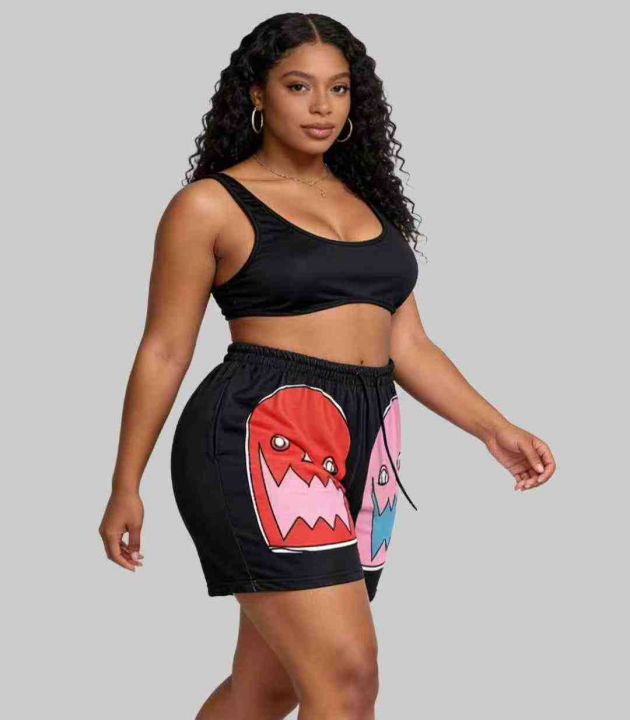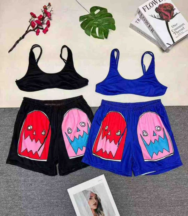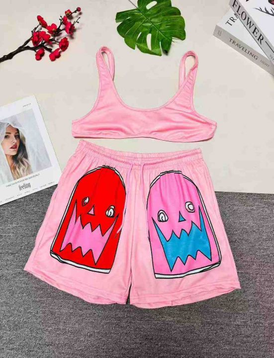 5.5清:欧美跨境性感背心短裤印花两件套,整款五色,...