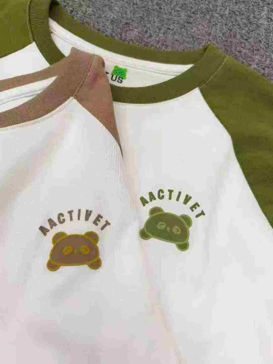 Ⓜ️全清7.8 童装春秋装插肩袖撞色上衣洋气长袖,数量100件,尺码110--160,胸前可爱小熊logo,面料柔软亲肤,后领包边,独立包装带吊牌