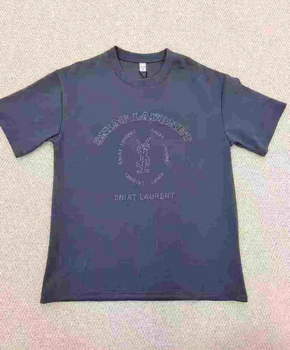 欧洲站潮牌新款圆领套头短袖男女同款重工烫钻图案T桖9...