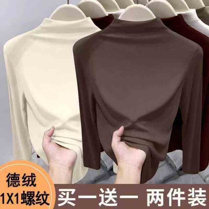 德绒保暖打底衫上衣秋冬半高领修身内搭长袖t恤女,弹力超大,1到4码,独立...