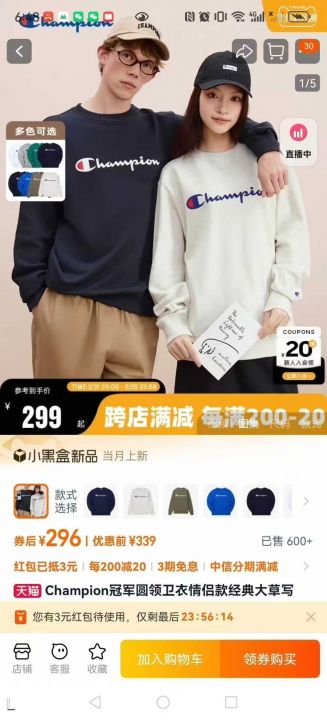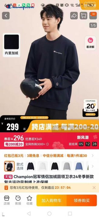 特价13.8元清330克天猫下架Champion冠军圆领卫衣万针...