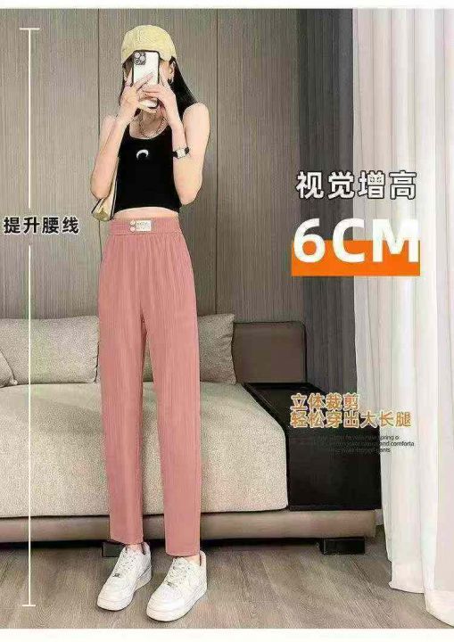 夏季新款网红宽松显瘦冰丝弹力休闲萝卜裤,独立包装,...