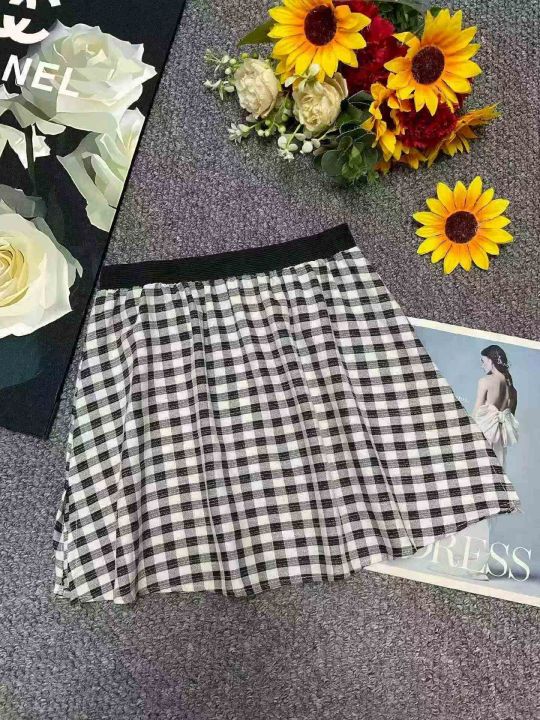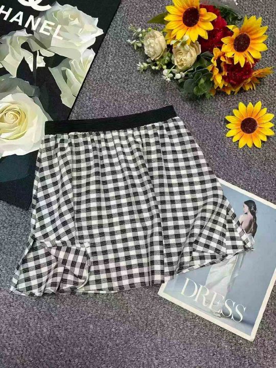 网红爆款格子打底神器内搭百搭下摆叠穿遮屁小屁帘短裙...