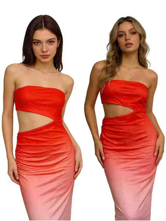 5.9清电商仓回收1503件外贸时装性感开叉时尚辣妹抹胸连衣裙,码数S-XL。面...