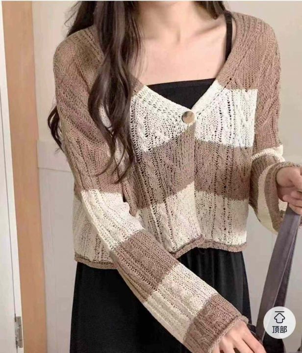 春秋新款时尚洋气V领显瘦一粒扣麻花针织开衫,独立包...
