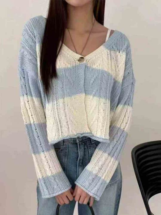 春秋新款时尚洋气V领显瘦一粒扣麻花针织开衫,独立包...