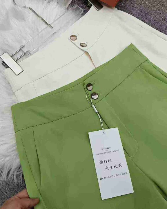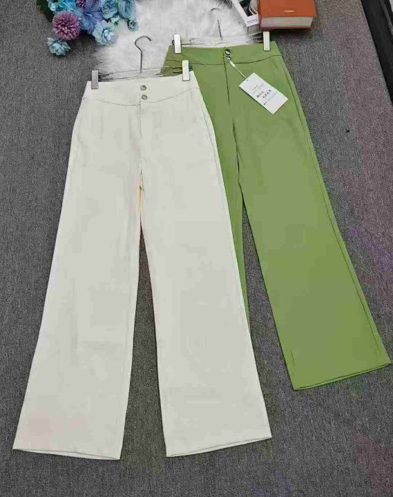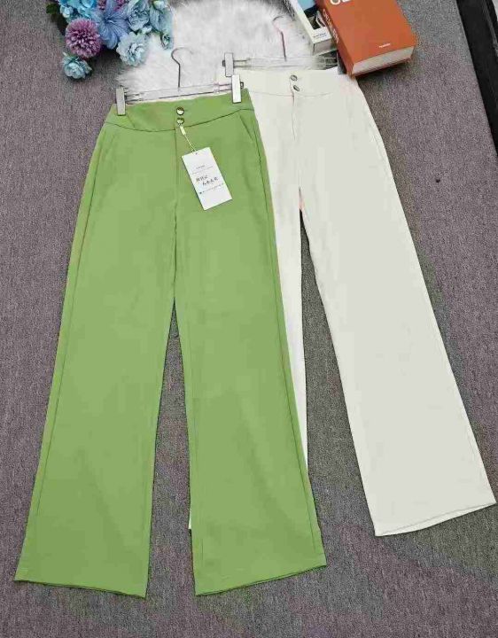 天猫下架一批高品质双扣高腰垂感阔腿宽松直筒女西装裤,独立包装,码数S~3XL(大码数多),整款两色(果绿为主),货品新净[强],M码裤长99厘米,319条,全清8.9元,分货加1