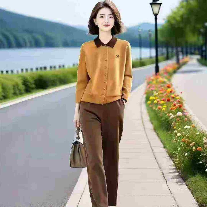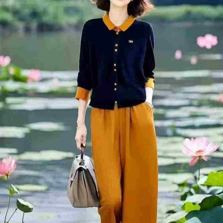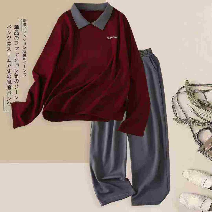时尚简约套装2026新款撞色翻领POLO衫上衣时尚洋气长袖...