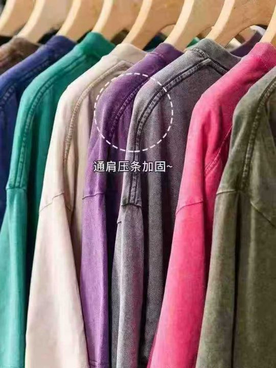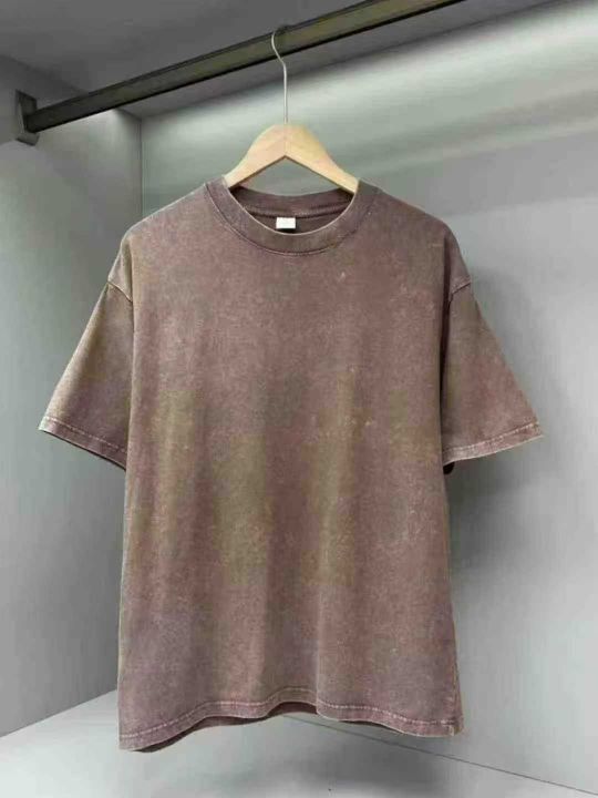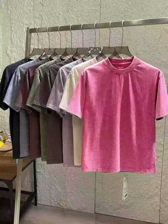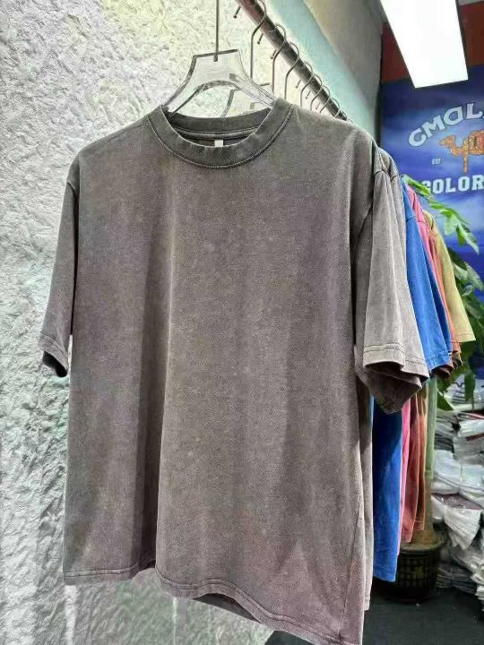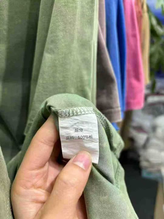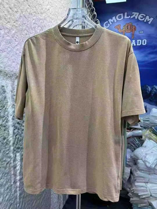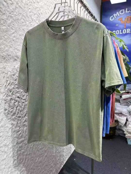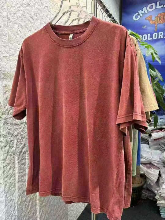 水洗做旧240克重磅纯棉圆领短袖。纯色宽松落肩版型 复古炒雪花T恤包边包条。尺码 M-5XL (比例中间码多) 适合摆摊 实体 直播 商场 外贸出口