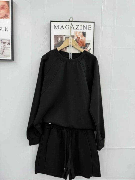 清10.8分货➕1新款纯色两件套圆领长袖和短裤运动套装...