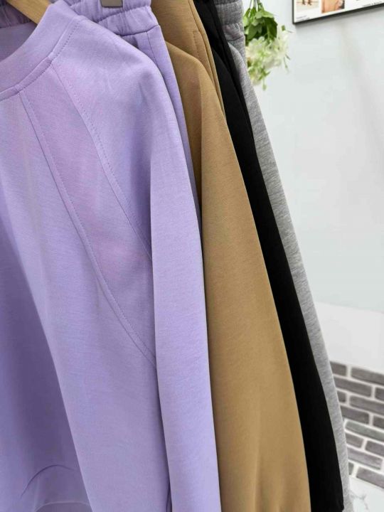 新款纯色两件套圆领长袖和短裤运动套装女装,数量210套,码数S-XL,独立包装,货品干净漂亮。