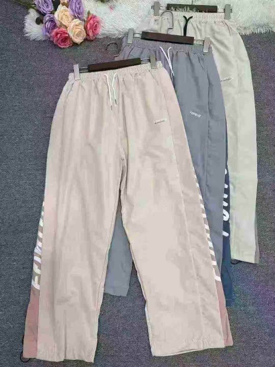 423条,港风休闲裤女夏季新款宽松阔腿裤薄款抽绳束脚拼接学生运动裤,独立包装,码数S-3XL,全清7.8元,分货+0.5