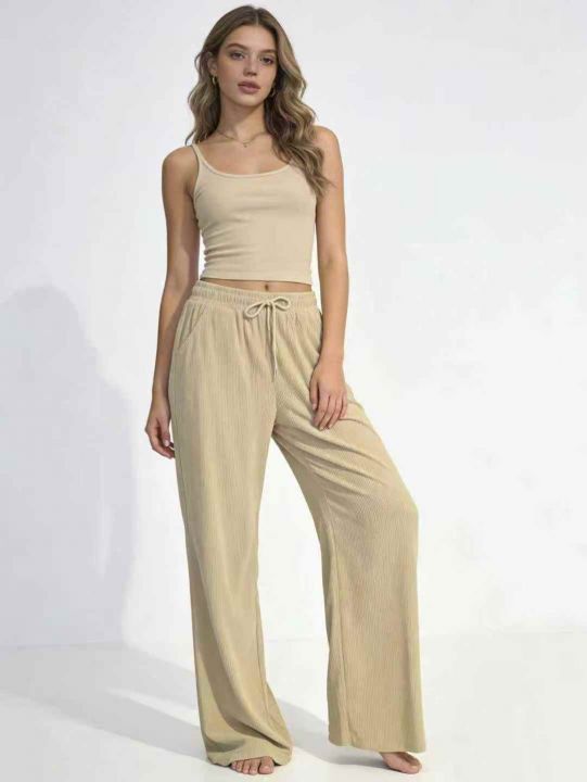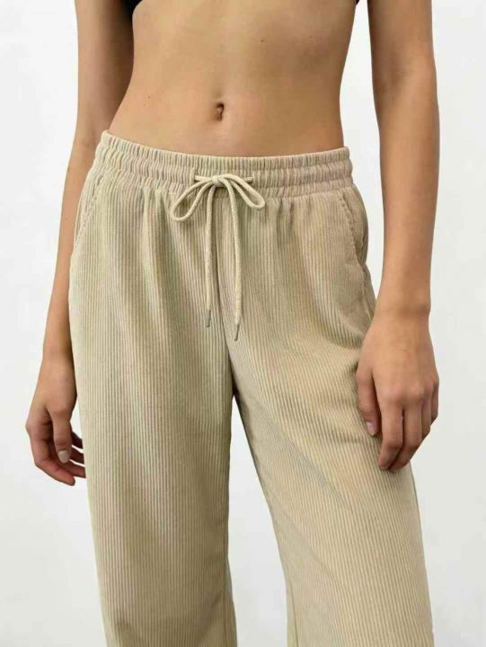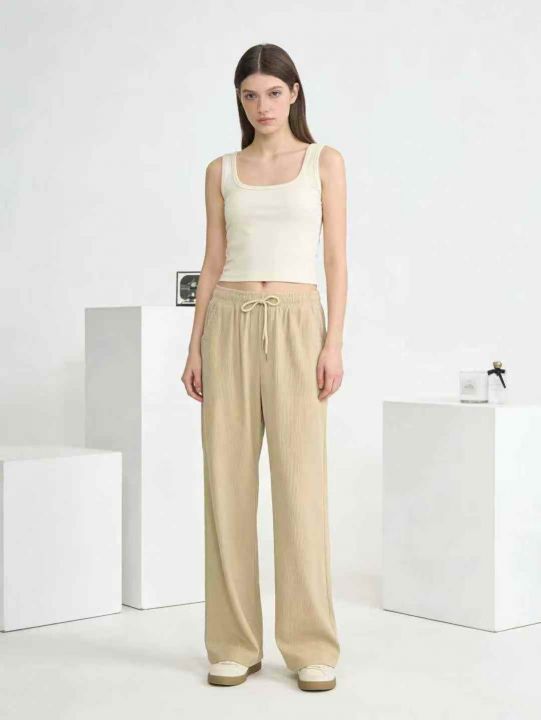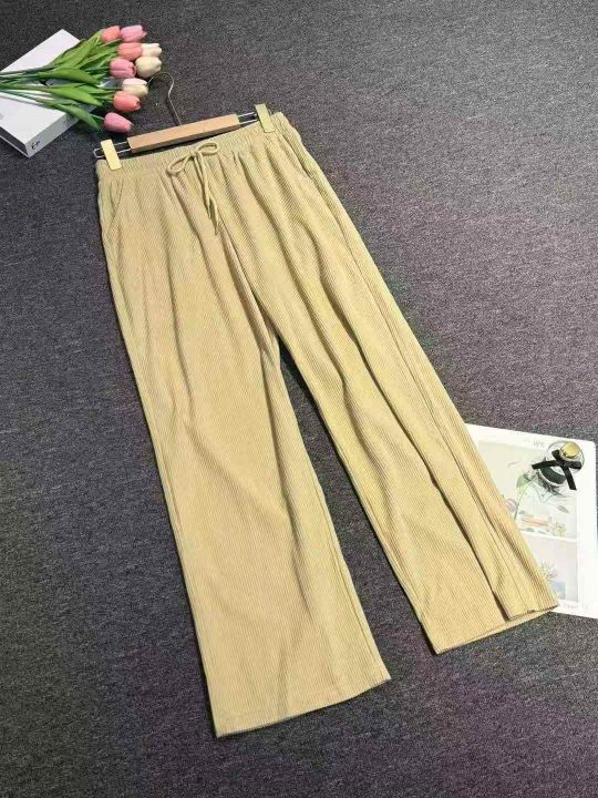春季新品高腰松紧腰抽绳款直筒裤休闲裤宽松大码裤,独...
