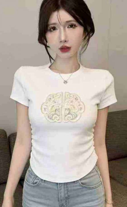 夏季新款纯欲甜辣妹弹力修身显瘦致绝美半袖新中式国风...