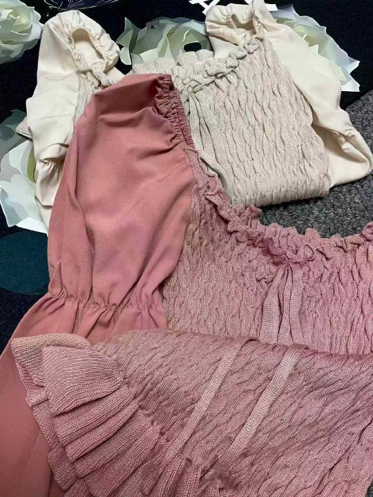 春夏季新款韩版针织拼接雪纺泡泡袖针织小衫,独立包装,均码面料软糯舒适弹力大,200件左右,全清6.9元超低价秒杀!