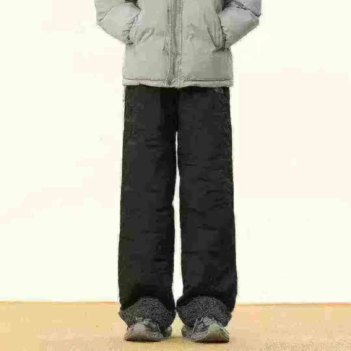 防寒休闲羊羔保暖裤男女冬季潮宽松葫芦纹防水直筒裤加...