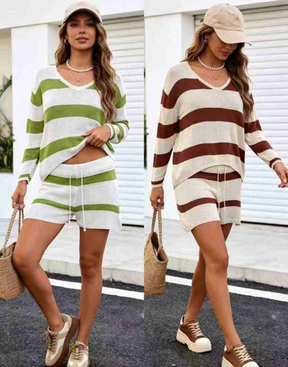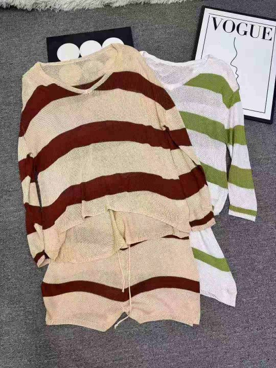 98套\'具体点数为准\'长袖薄款时尚百搭条纹针织短裤套装,独立包装\'均码,货号001#30