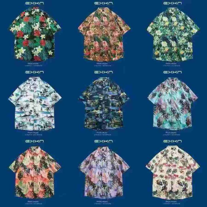 欧洲站夏季新款男士衬衫夏日风情时尚短袖免熨烫翻领衬...
