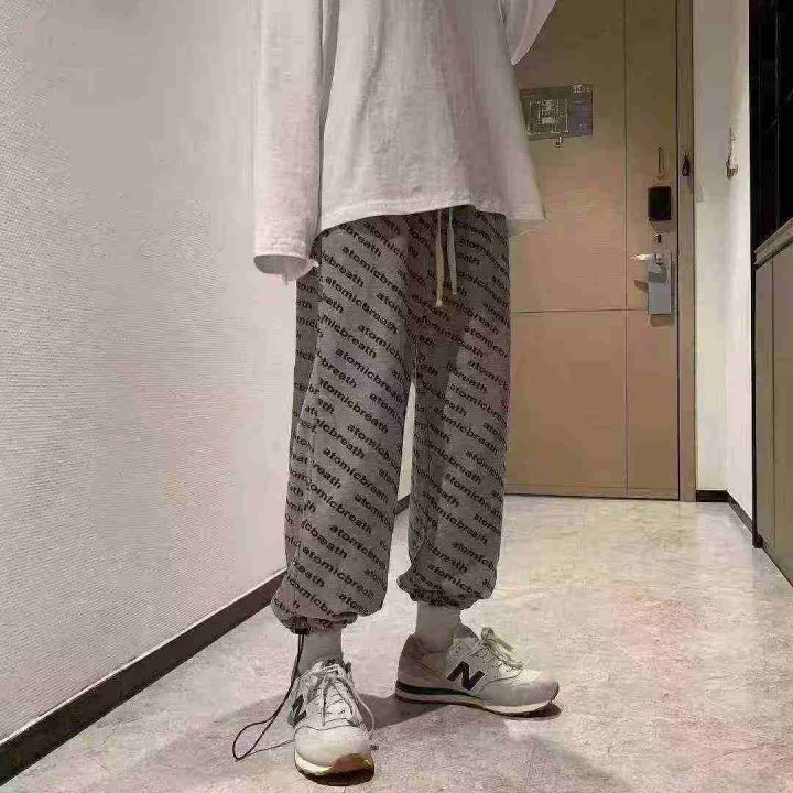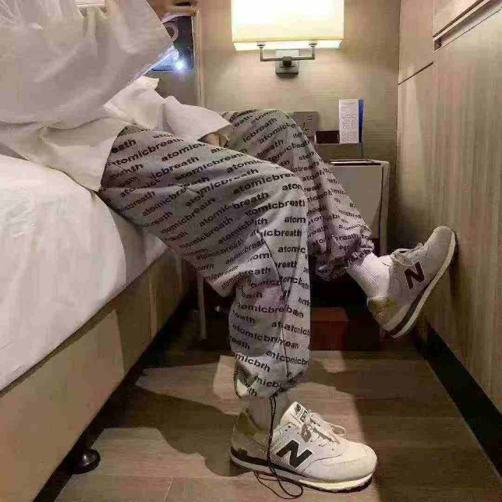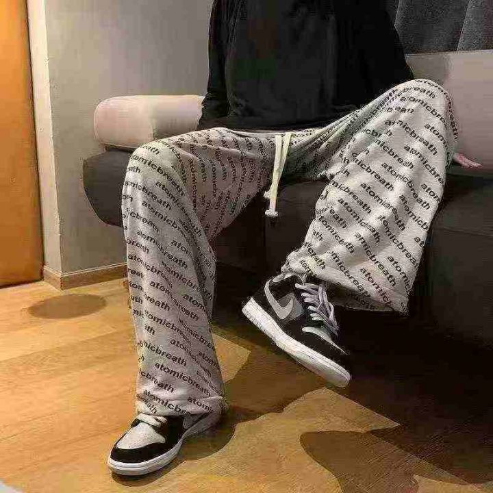 男装港风新款宽松潮牌小满标直筒阔腿束脚裤,数量545...