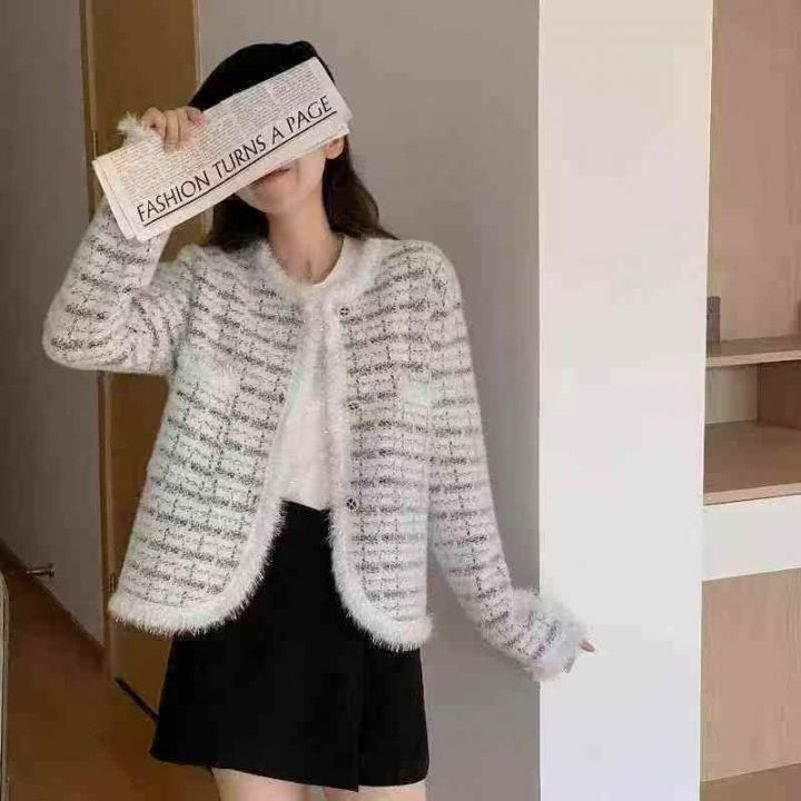 全清价24.82000件左右,春秋季新款宽松洋气小香风针织毛衣开衫仿水貂外套,...