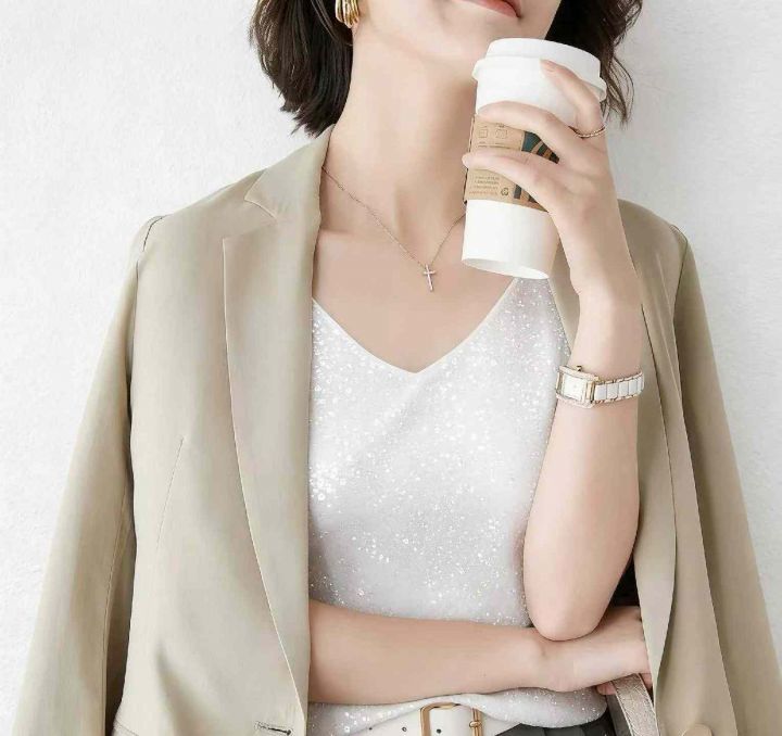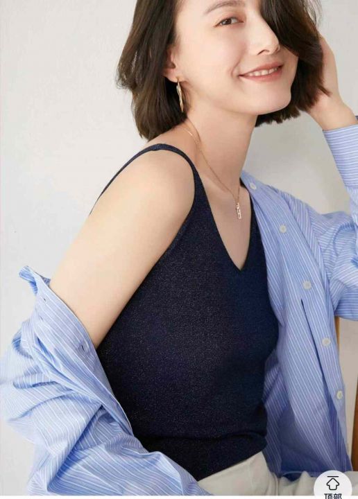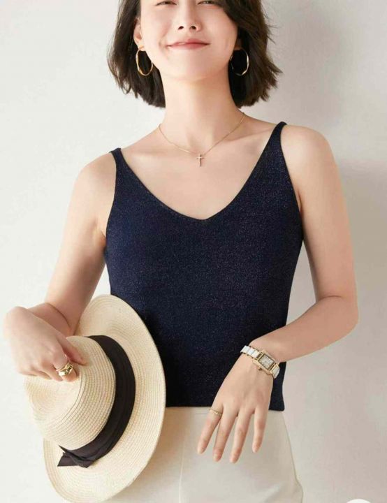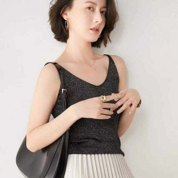 夏季新款网红复古港风细闪设计款冰丝针织吊带背心,独...