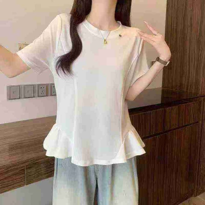 电商仓回收530件高级小众独特设计感花朵下摆大码纯色短袖T恤,码数XL-4XL。面料柔软有弹性,款式好看,有独立包装。分货➕1