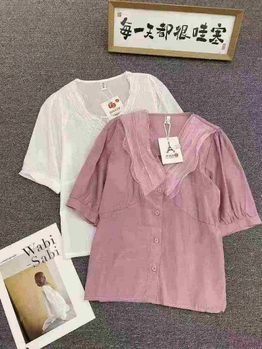 纯色简约靓妹衬衫196件7.5,褶皱设计,绑带收腰,码数1-3码(S-L),独立包...