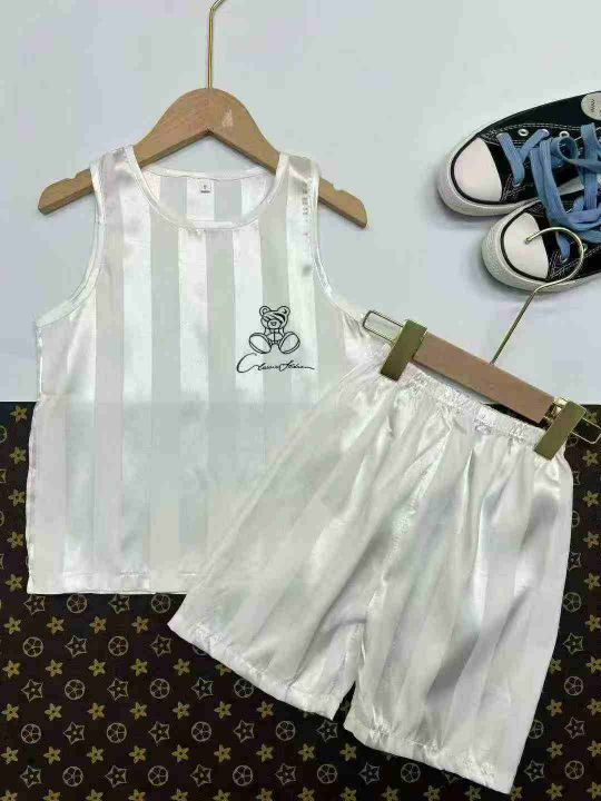 童装家居服套装,仿真丝面料,面料柔软透气凉爽,数量1765套,黑白两色,8-24码(3-13岁)独立包装吊牌,分货➕1元