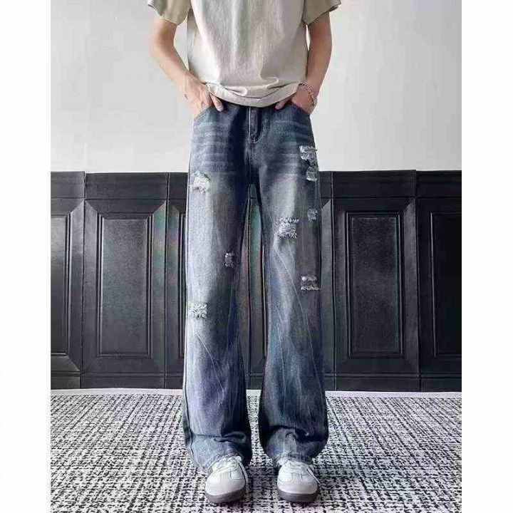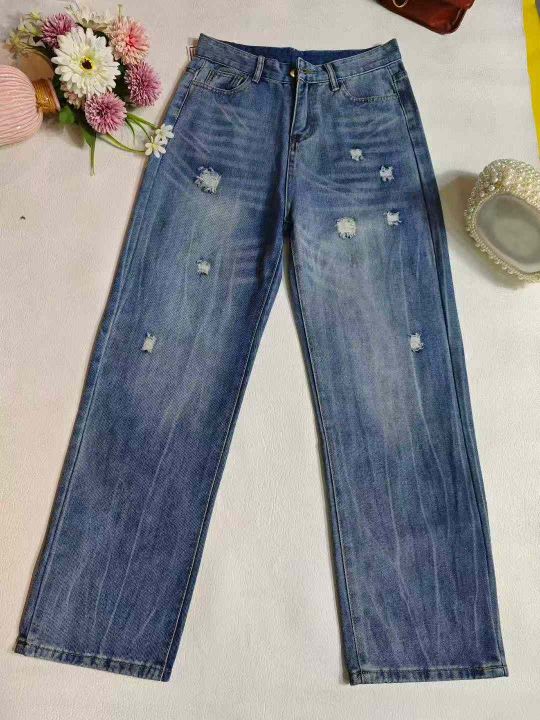 天猫下架水洗棉裂纹破洞复古牛仔裤,155件,原厂独立...