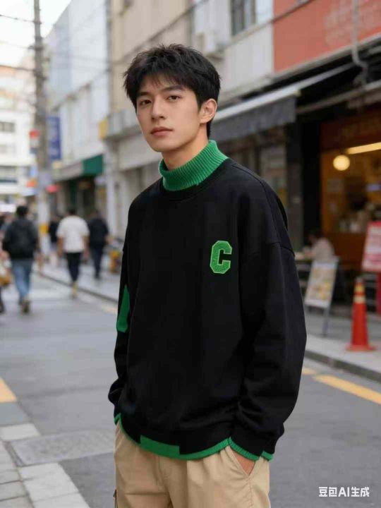 整款假两层毛衣领加绒卫衣男加厚款痞帅秋冬...