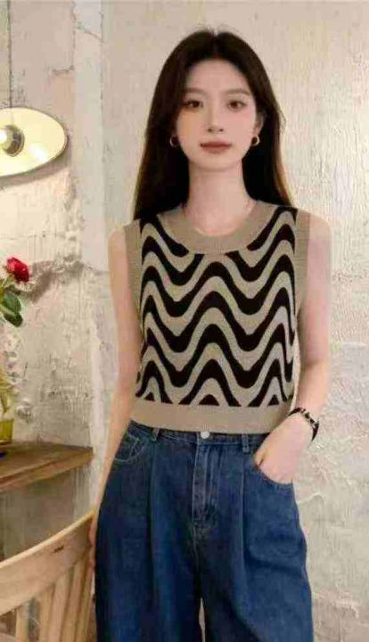 夏季新款韩系小香风波纹撞色圆领无袖针织毛衣马甲,独立包装,均码面料柔软舒适弹力大,200件,全清4.9元超低价秒杀!