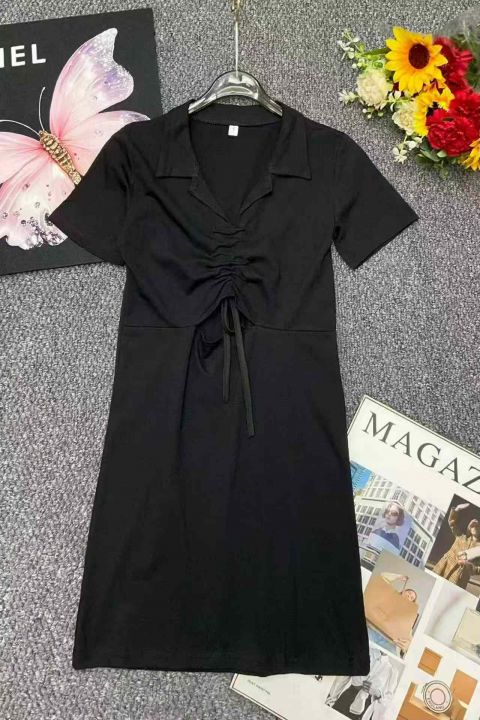 夏季新款赫本风高级感收腰显瘦抽绳V领褶皱小黑裙,独立包装,工厂新货1-4码, 560件左右,全清4.9元超低价秒杀!分货加一!