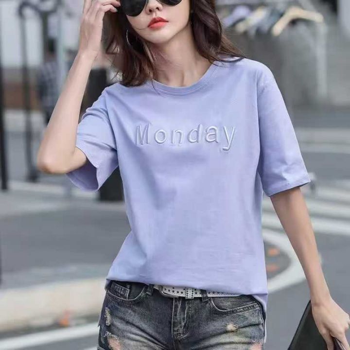 女装宽松刺绣字母时尚百搭纯棉短袖 数量846件 码数M--3XL 五个颜色 侧边开叉 独立包装 货品干净整齐