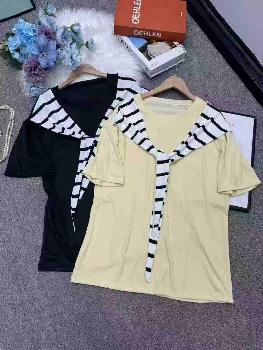 全清价5.9设计感条纹 短恤T恤女夏宽松显瘦通勤风上衣2...