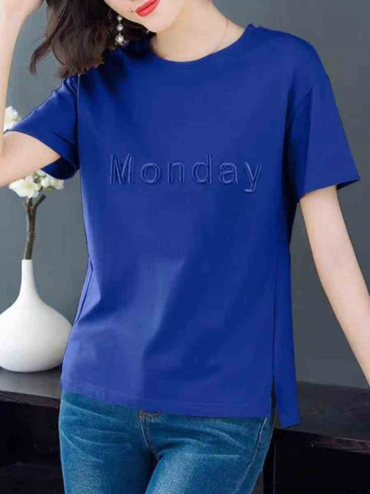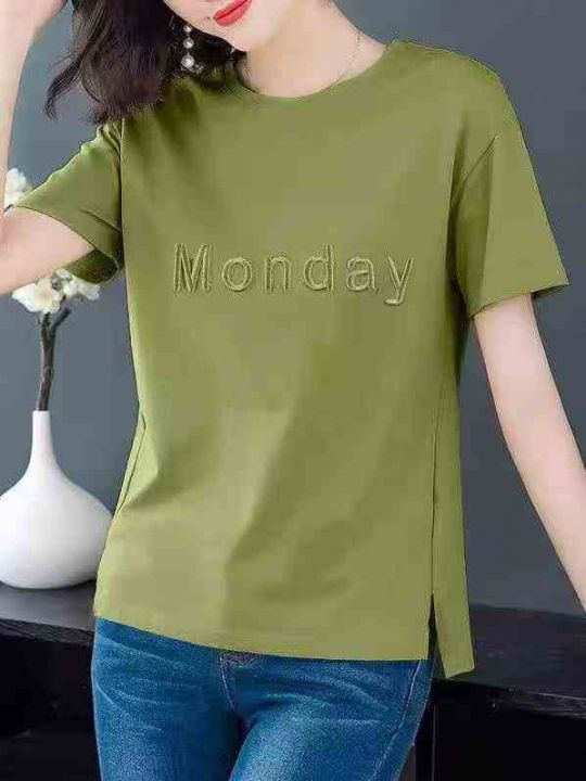 女装宽松刺绣字母时尚百搭纯棉短袖 数量846件 码数M--3XL 五个颜色 侧边开叉 独立包装 货品干净整齐