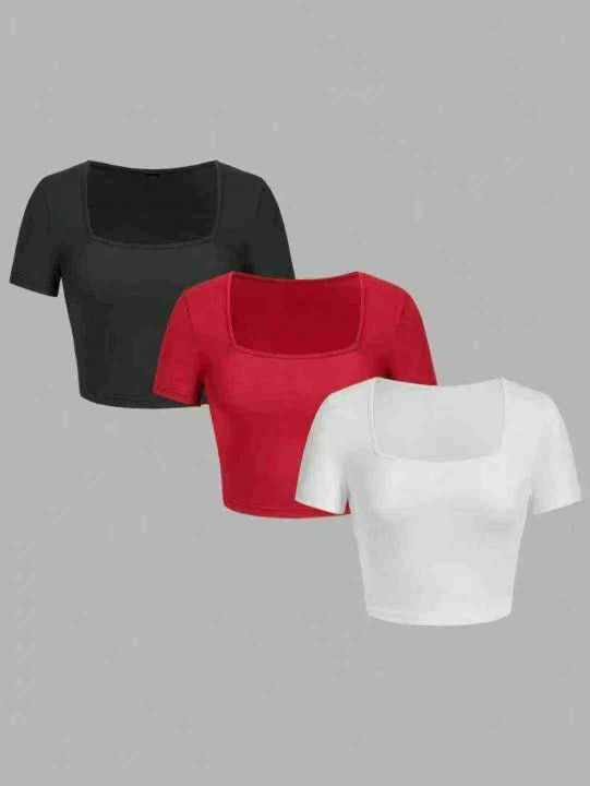 5000多件女款法式方领高腰露脐短T,尺码:XS~XL,面...