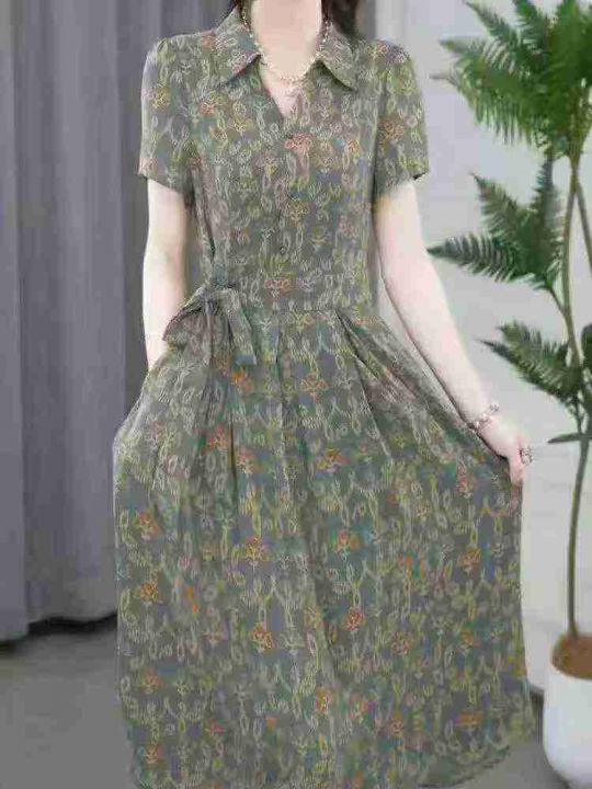 夏季新款网红爆款短袖气质减龄碎花妈妈衬衫连衣裙,独...