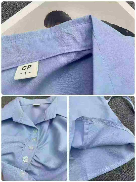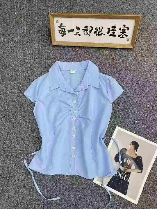 纯色简约靓妹衬衫196件7.5,褶皱设计,绑带收腰,码数...