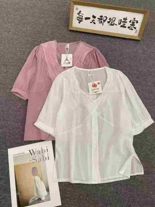 夏季新款复古新中式盘扣国风刺绣设计感百搭针织小衫,独立包装,均码面料柔...