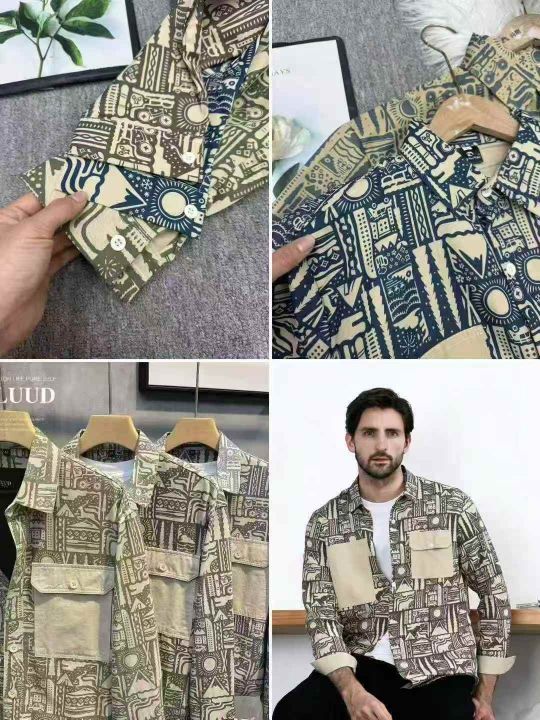 全清8.5印花长袖衬衫绅装春夏休闲修身度假户外衬衣,2...
