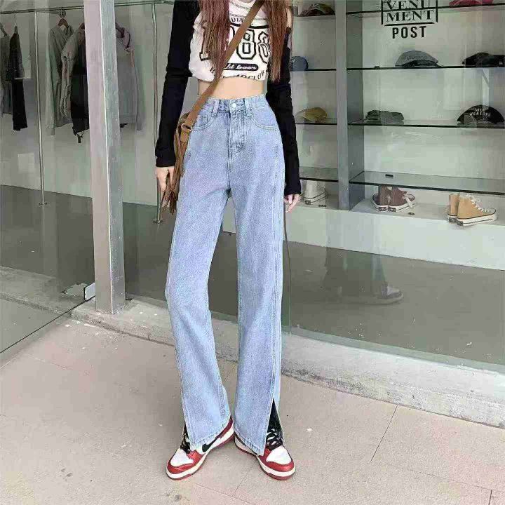 春秋新款网红复古设计款前开叉直筒阔腿牛仔裤,独立包装带腰卡,码数S- 2XL...
