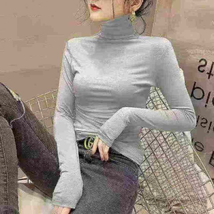 ☕️高弹力面膜打底衫女长袖t恤半高领春秋冬新内搭洋气紧身上衣450件全清5....
