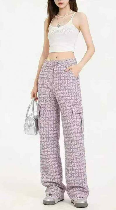 夏季新款设计感提花高腰显瘦气质百搭多袋直筒阔腿工装牛仔裤,独立包装带腰...