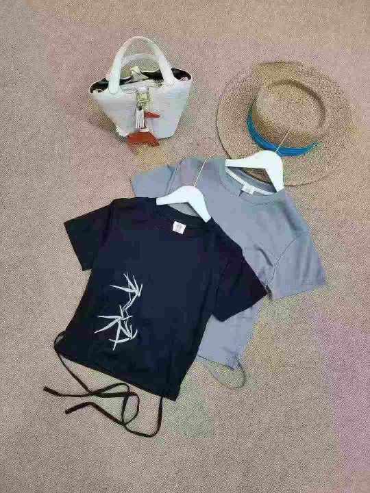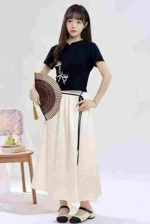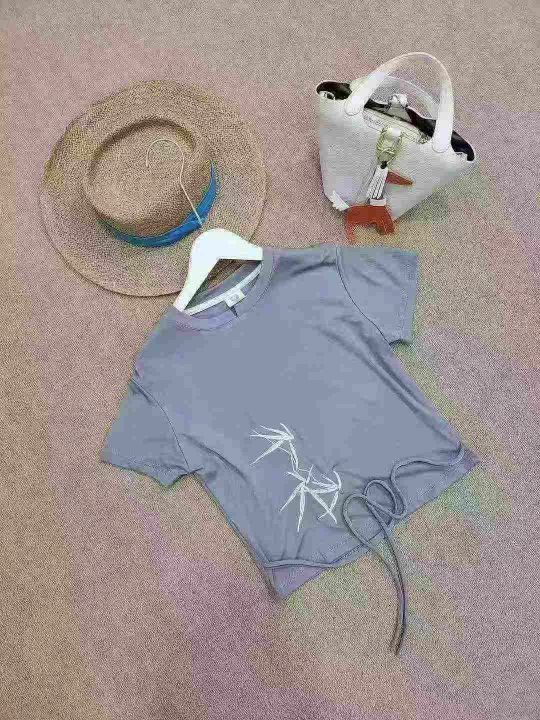 [月亮]:新中式刺绣绑带设计辣妹包边T恤
