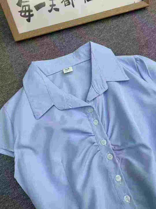纯色简约靓妹衬衫196件7.5,褶皱设计,绑带收腰,码数1-3码(S-L),独立包...