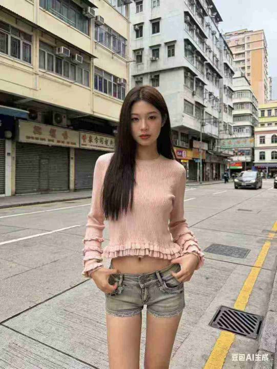 6.8元清品牌原单辣妹针织上衣,数量100件左右,单款粉...